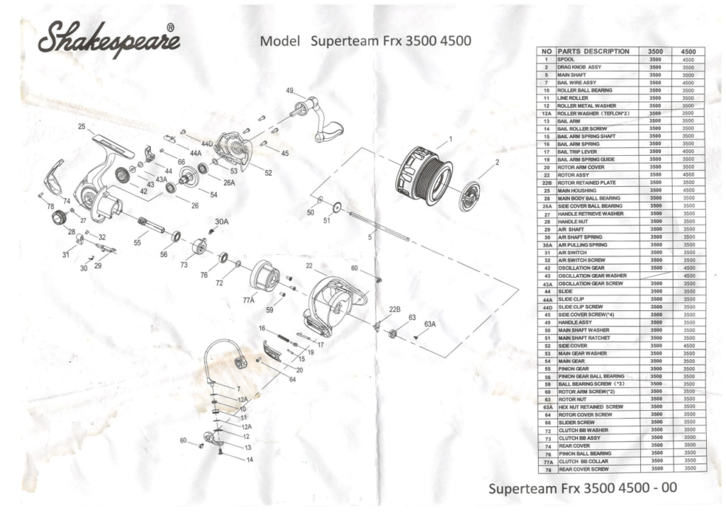 Взрыв-схема (схема разбора) катушки Shakespeare Superteam FRX.