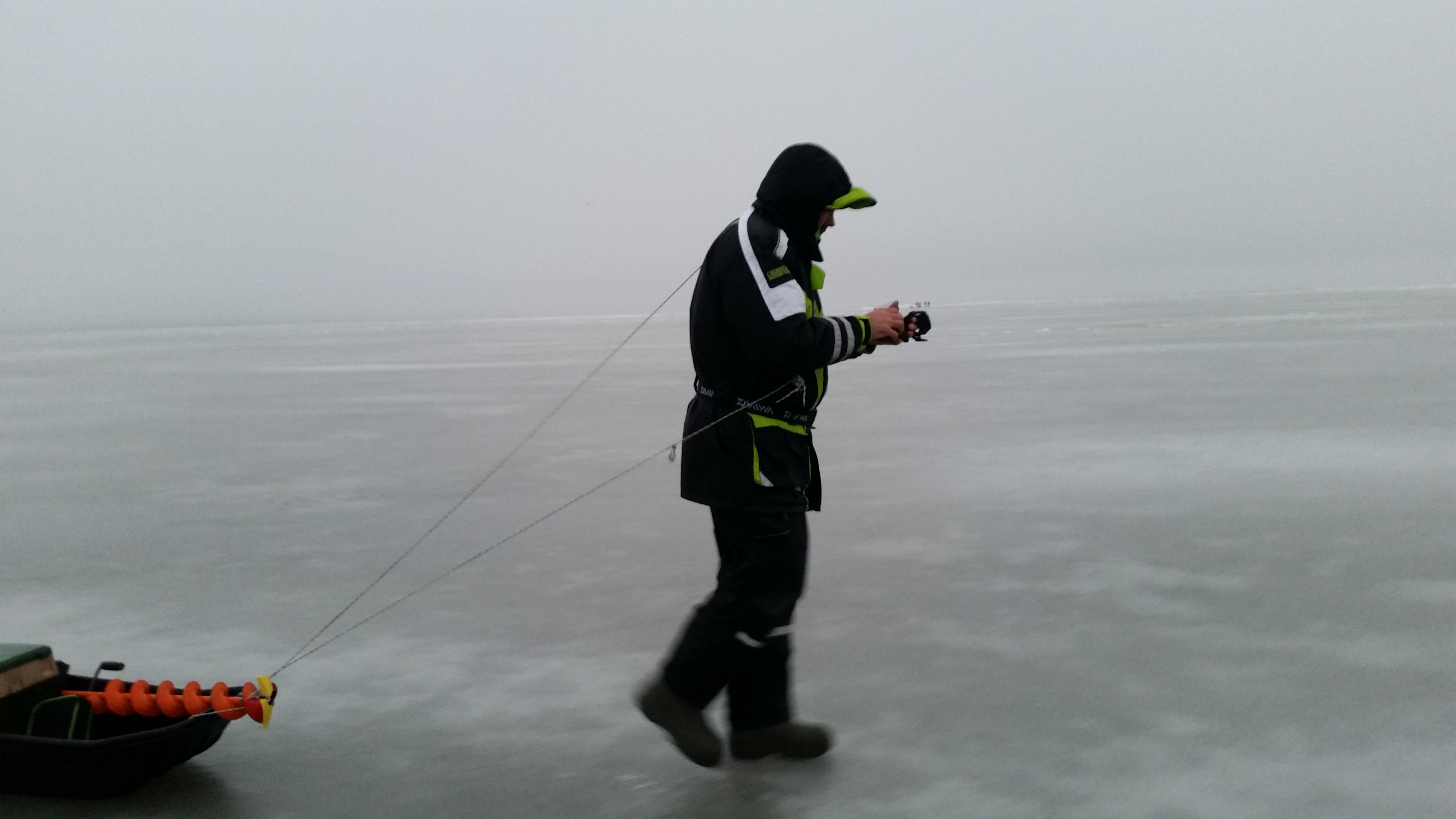 В субботу были на рыбалке в Пярну. Погода была…. мдаа. Лучше не рассказывать. В залив не пошли. Там лёд пока всего 10 сантиметров и при таком ветре его может легко оторвать от берега и унести в море. Не самое радостное приключение. Ловили мы на реке, прямо в городе, на против магазина Port Artur, точнее у насосной станции. Толщина льда около 20 — 25 сант. Сверху много снега. Вода из лунок прёт под давлением, так что скоро всё вокруг превращается в жутку кашу. Но терпимо.